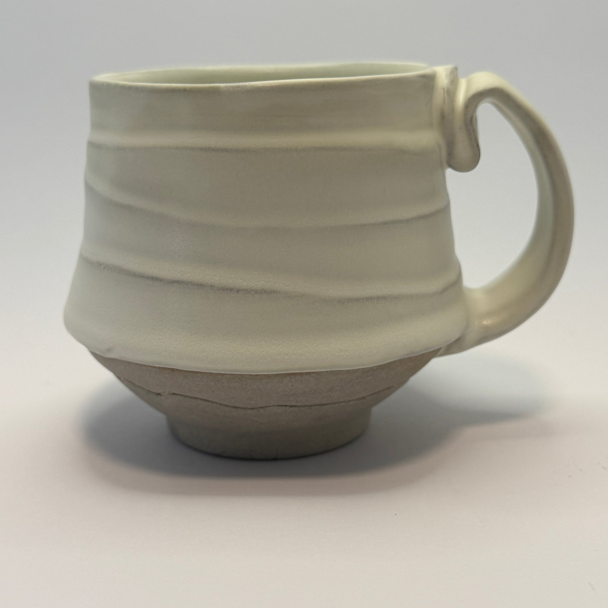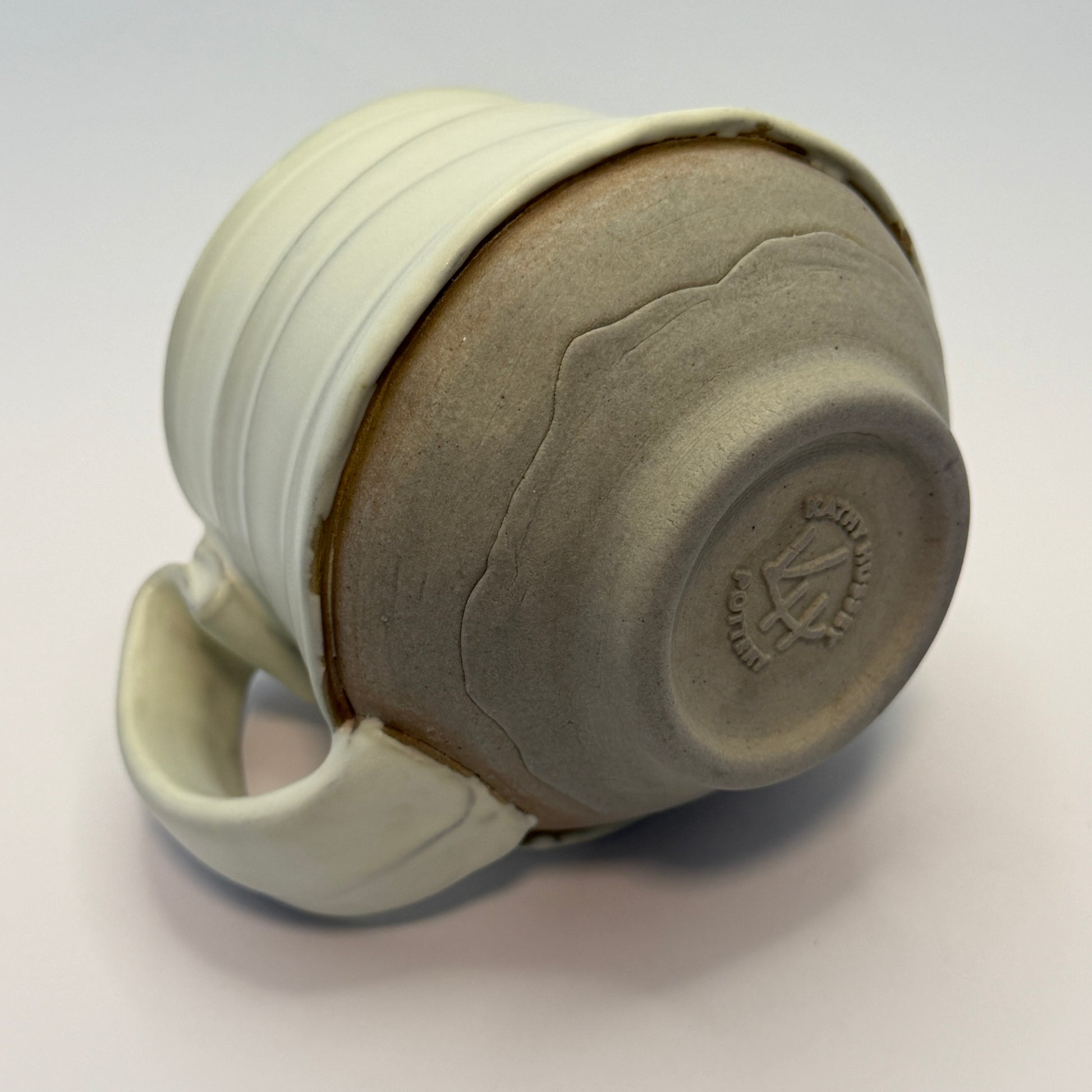 Meet the Multi-Mug: a wheel-thrown top, and a hand-built foot, pressed in a custom mold that I spent an absurd amount of time engineering to create a raised logo…like a little-bitty clay monument that you only see if you go looking for it. You won’t have to go looking for my signature squiggle handle, though. It’s nestled right there in your hand.
