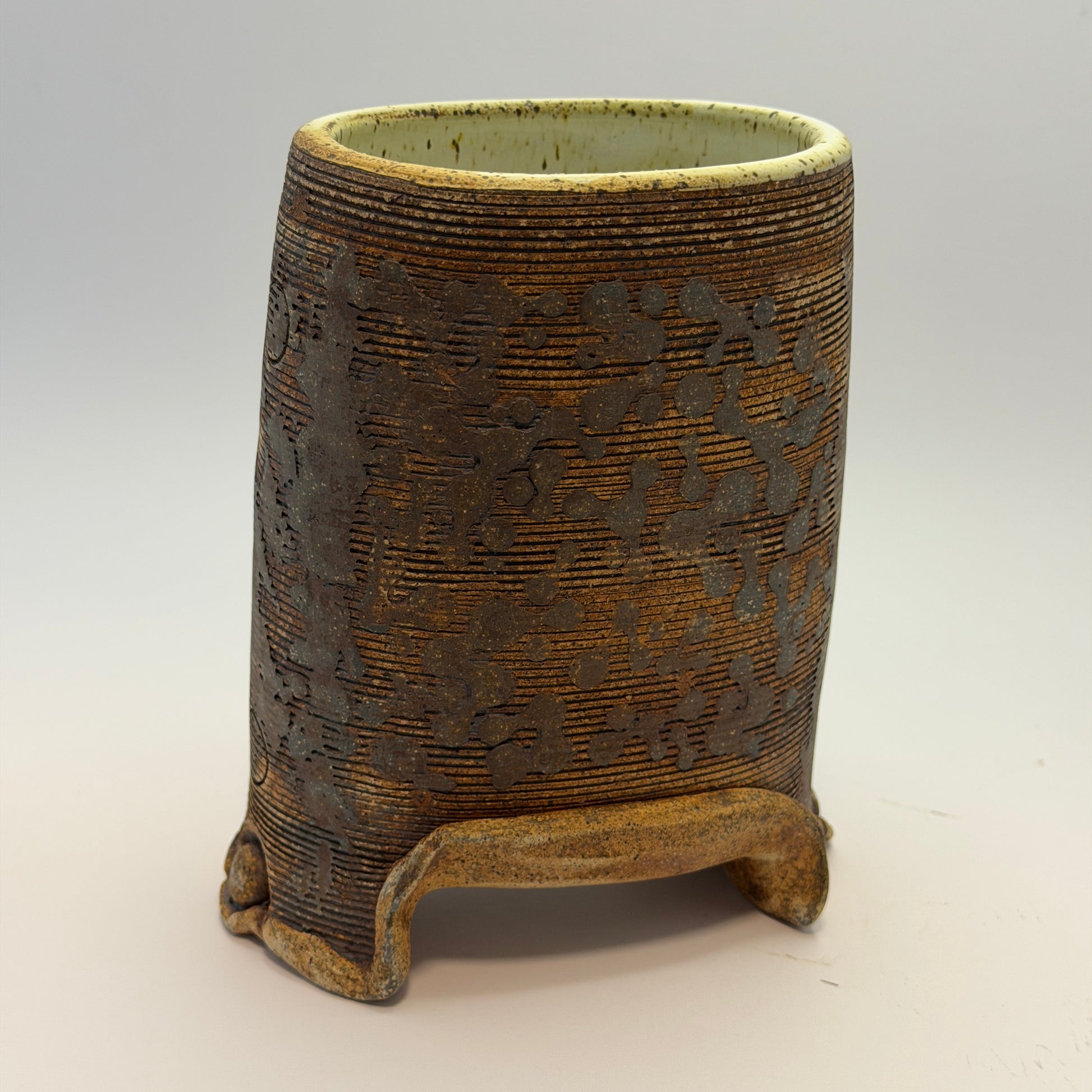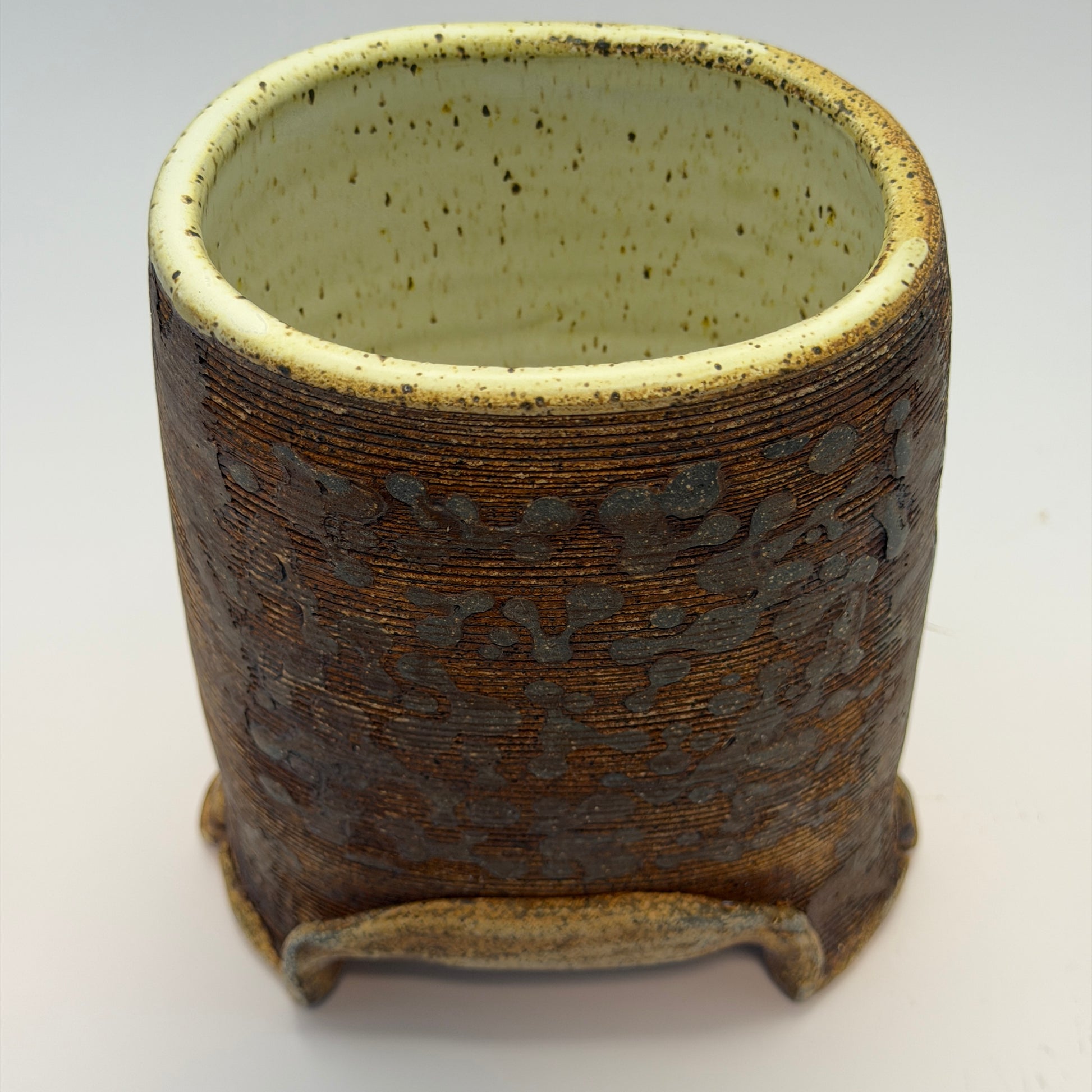 This crazy thing. I love it. But you can have it if you want. It will hold things! And looks super-cool doing so. Reduction-fired in a gas kiln and rustic as all-get-out.